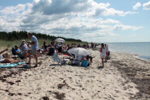 Måndagen kom med strålande sol och vi samlades på Ölbäcksstranden för vår strandfest. I år närmade vi oss rekordet för deltagare och det var båda gamla och unga som deltog. Som vanligt hade Fredrik och Ida Losman, med hjälp av Linnéa Granberg Sönnert, ordnat alla tävlingar som också fick många deltagare. Tur med vädret hade vi också!